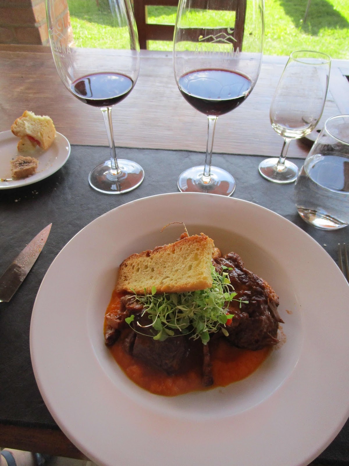 The last winery we visited in Valle de Uco was Andeluna. It was there that we had another lunch pairing with their wines. Our table came with grand views of the vineyards and the mountains. Their wines were good as was their food, but after having the Domaine Bousquet wines, they didn't quite measure up to our elevated palette.