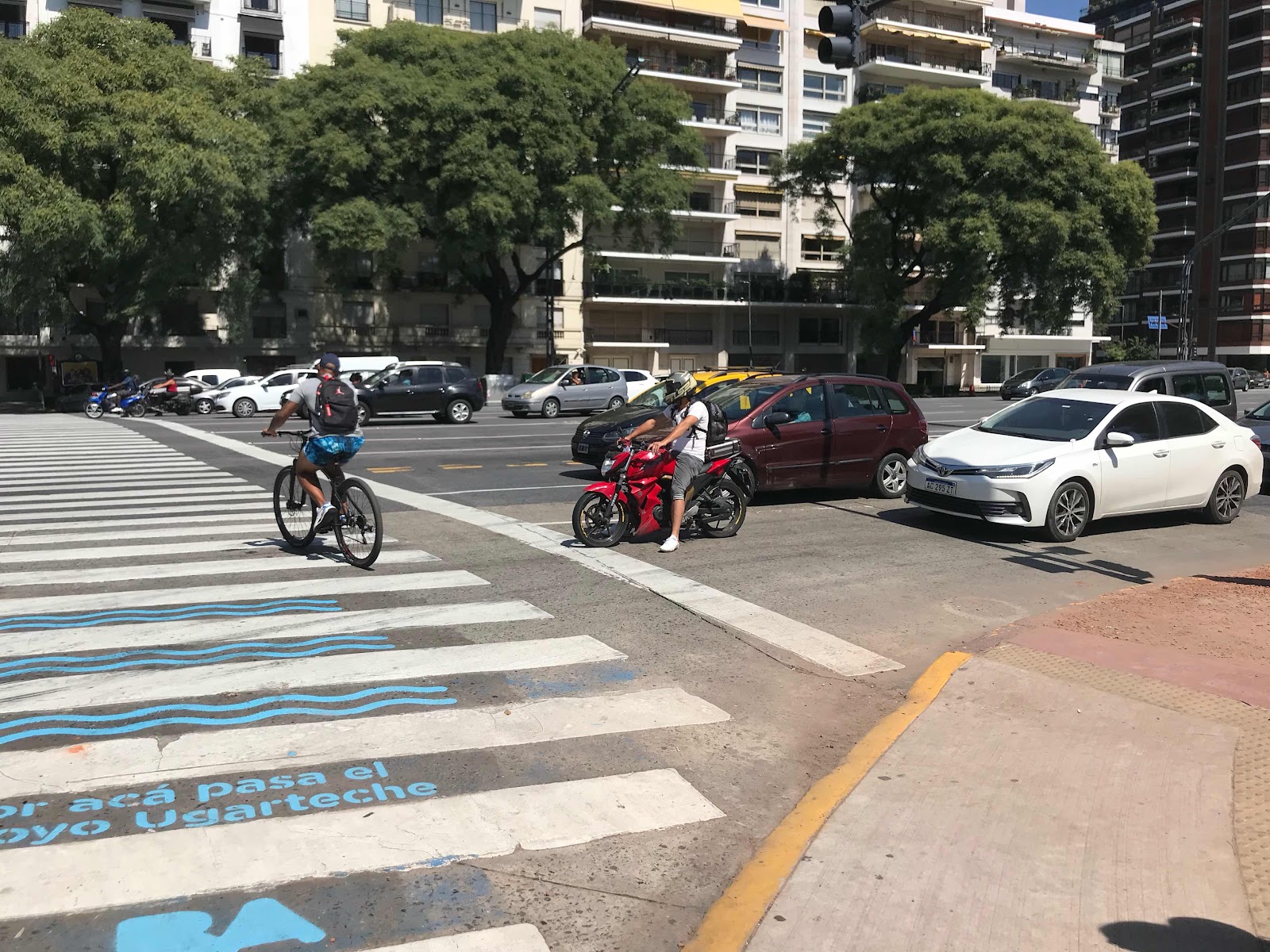 One of Buenos Aires' main thoroughfares through the city, I counted nine lanes (plus parking) on this one-way street in the city.